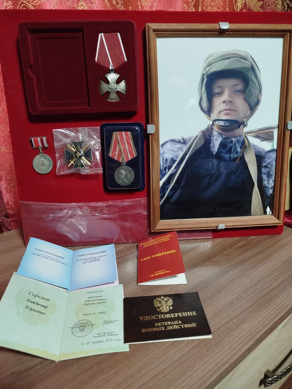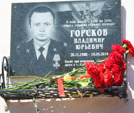 19 мая 2018 года в составе оперативной группы ВОГОиП МВД России по Северо-Кавказскому федеральному округу старший сержант полиции Владимир Горсков нес службу по охране общественного порядка и обеспечению общественной безопасности на территории храма Архангела Михаила в городе Грозный. Во время церковной службы, в 15.00, боевики совершили вооруженное нападение на храм, с целью убийства прихожан и служащих храма. В бою, отражая вооруженное нападение террористов Владимир Горсков погиб. Благодаря самоотверженности, Владимир помог предотвратить более тяжкие последствия нападения и избежать большего количества жертв в церкви.
